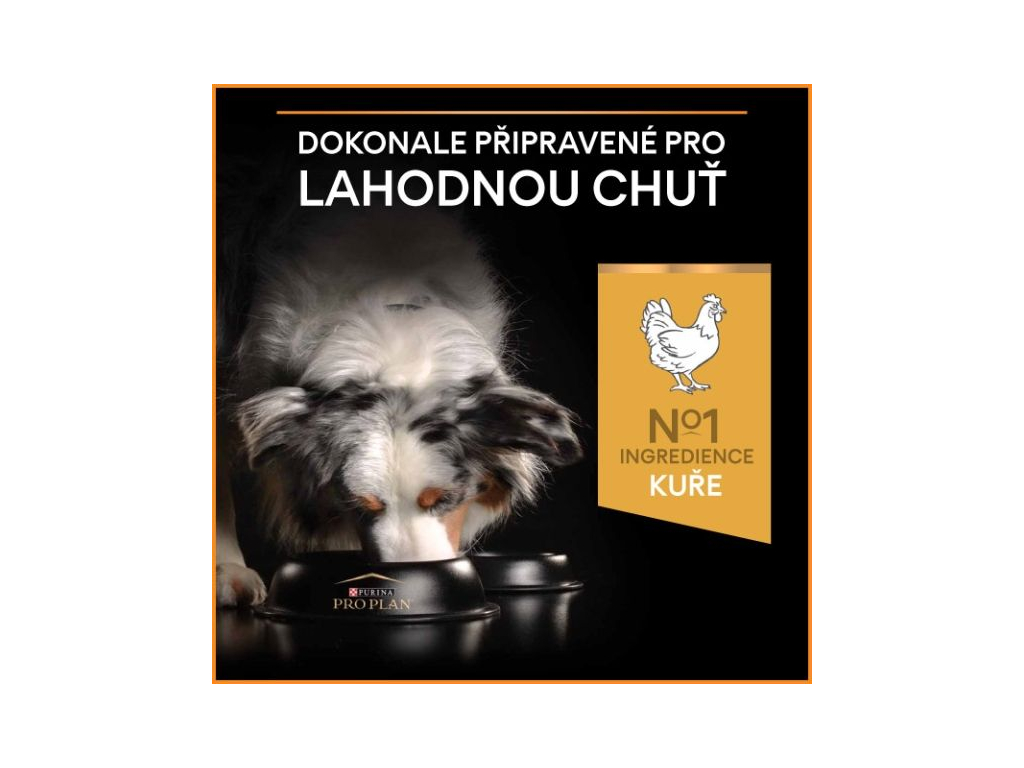 Hlavní složkou krmiva Purina PRO PLAN® Everyday Nutrition jsou kousky vysoce kvalitního kuřecího. Složení je navržené tak, aby vašemu psovi každý den dodalo vše, co potřebuje ke zdravému životu. Granule obsahují specifické živiny ve vyváženém poměru, což podporuje perfektní vstřebávání všech látek a prospívá zdraví vašeho psa. Krmivo pomáhá udržovat zdravé klouby a lesklou srst od kořínků až po konečky. Vysoký obsah bílkovin podporuje silné svaly, ideální tělesnou kondici a celkovou spokojenost vašeho psa.