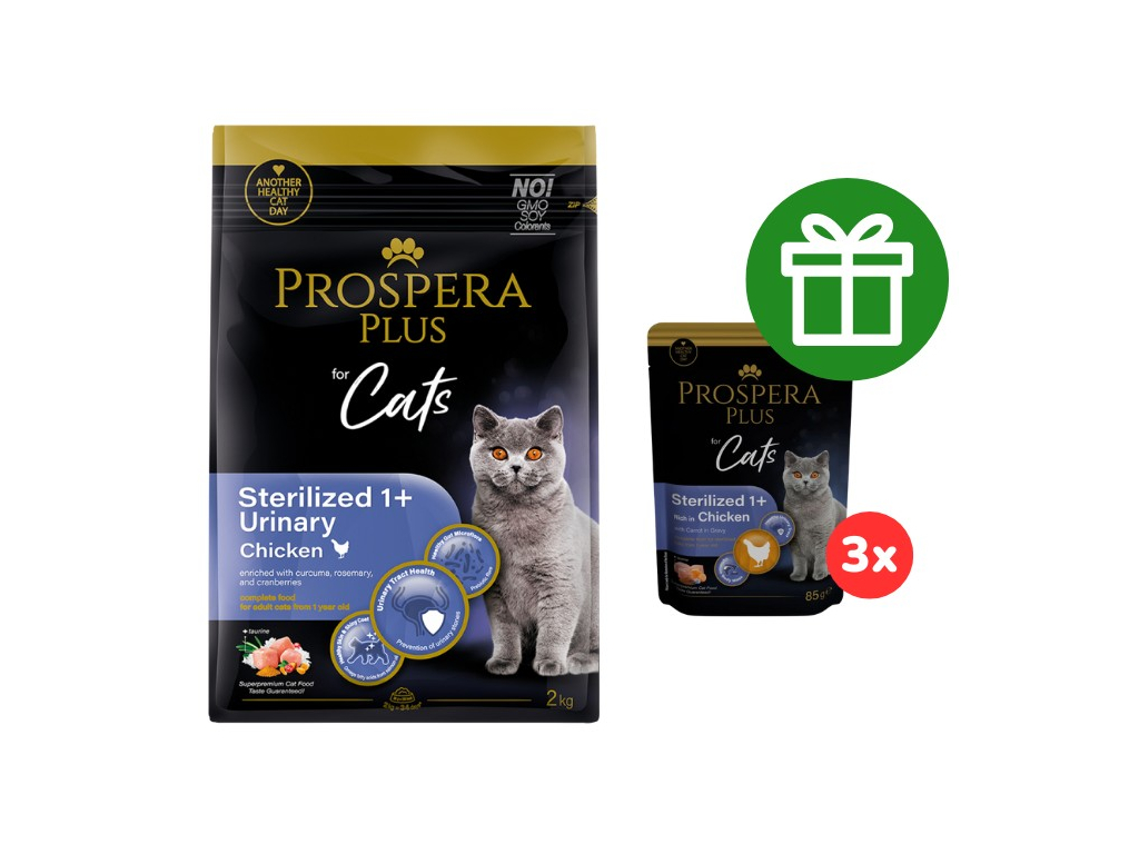 Prospera Plus Sterilized 1+ Chicken Urinary 2kg + ZDARMA 3 ks Prospera kapsičky 85g