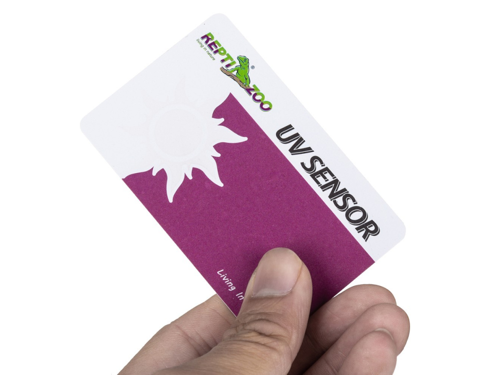 Opakovaně použitelná testovací karta ReptiZoo umožňuje snadno zkontrolovat účinnost UVB světla v teráriu.