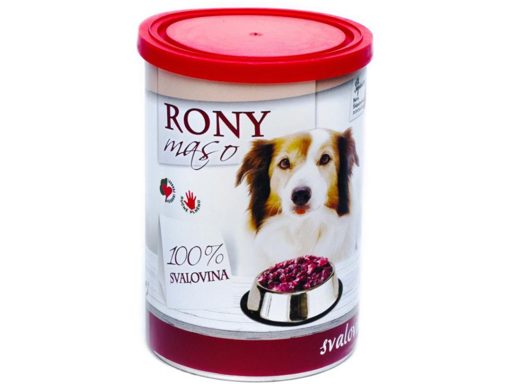 České konzervy pro psy RONY obsahují 100% svalovinu, která je jemně krájená. Jedná se o masové konzervy bez vnitřností. V sortimentu naleznete různé druhy – kuřecí, hovězí, zvěřinu a maso, což je kombinace hovězí a vepřové svaloviny. Konzervy jsou energeticky hodnotné díky šťavnatému obsahu, proto jsou vhodné pro štěňata, kojící feny nebo psy v zátěži. RONY je vyráběn ve 400g nebo 800g a je opatřen plastovým víčkem pro uchování čerstvosti po otevření.
