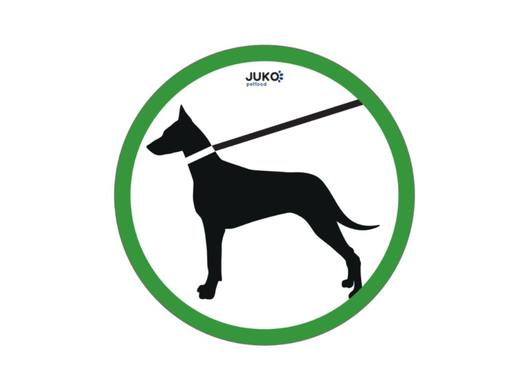 Tato samolepka VSTUP NA VODÍTKU jasně upozorňuje na nutnost mít psa při pohybu v dané oblasti vždy na vodítku.
