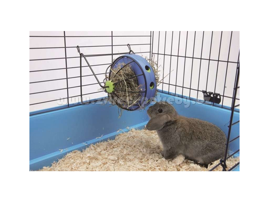 Krmítko na seno, pamlsky a na hraní v jednom, s možností připevnění na klec. Velikost ø 16 cm. Lze do klece zavěsit, nebo prostě položit.Více informací