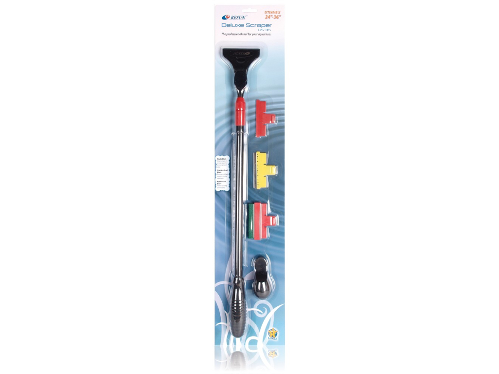 Profesionální teleskopická škrabka s výměnnými hlavami pro efektivní čištění skel akvária.