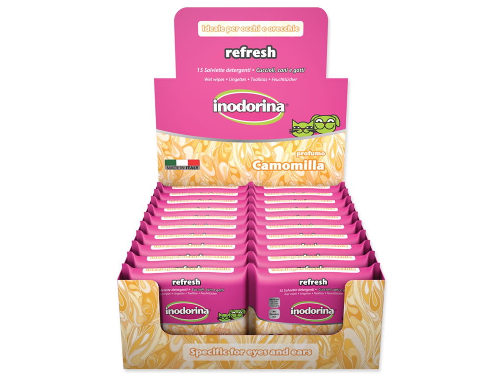 Inodorina je italská značka specializovaná na hygienu a péči o psy a kočky, která působí na trhu již více než 50 let. Sortiment zahrnuje vlhčené ubrousky, šampony, deodoranty, čisticí pěny, absorpční podložky i další produkty pro každodenní hygienu domácích mazlíčků. Inodorina klade důraz na bezpečné složení, jemné parfemace a praktické použití doma i na cestách. Díky spojení italské kvality, funkčnosti a příjemných vůní patří značka mezi oblíbené volby chovatelů, kteří chtějí udržet své mazlíčky čisté a svěží bez zbytečné chemie.