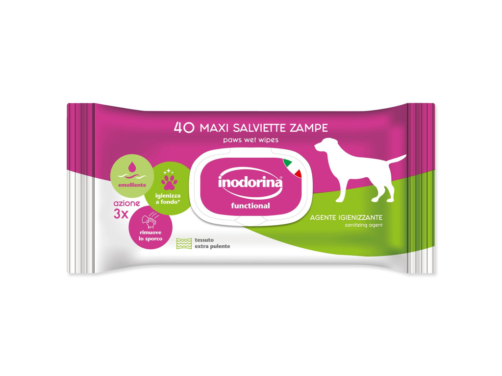 Inodorina je italská značka specializovaná na hygienu a péči o psy a kočky, která působí na trhu již více než 50 let. Sortiment zahrnuje vlhčené ubrousky, šampony, deodoranty, čisticí pěny, absorpční podložky i další produkty pro každodenní hygienu domácích mazlíčků. Inodorina klade důraz na bezpečné složení, jemné parfemace a praktické použití doma i na cestách. Díky spojení italské kvality, funkčnosti a příjemných vůní patří značka mezi oblíbené volby chovatelů, kteří chtějí udržet své mazlíčky čisté a svěží bez zbytečné chemie.