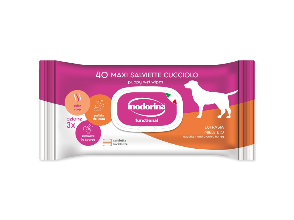 Inodorina je italská značka specializovaná na hygienu a péči o psy a kočky, která působí na trhu již více než 50 let. Sortiment zahrnuje vlhčené ubrousky, šampony, deodoranty, čisticí pěny, absorpční podložky i další produkty pro každodenní hygienu domácích mazlíčků. Inodorina klade důraz na bezpečné složení, jemné parfemace a praktické použití doma i na cestách. Díky spojení italské kvality, funkčnosti a příjemných vůní patří značka mezi oblíbené volby chovatelů, kteří chtějí udržet své mazlíčky čisté a svěží bez zbytečné chemie.