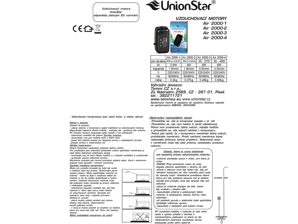 - určený akvaristům, kteří potřebují provzdušnit několik menších nádrží