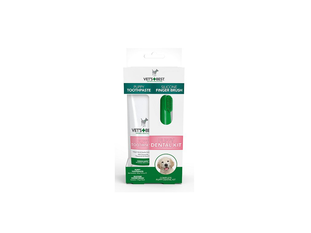 Sada na čištění zubů pro štěňata poskytuje nejlepší zubní péči pro Vašeho domácího mazlíčka. Zubní pasta pro štěňata Vet´s Best je chutná pasta, která začne pracovat okamžitě, aby mohla předejít plaku a zubnímu kameni dříve, než se začne tvořit. Je to jemná směs ingrediencí připravených tak, aby splňovaly potřeby štěňátek. Obsahuje přírodní směs máty peprné, hřebíčku, heřmánku a levandulového oleje na zklidnění podrážděných dásní při prořezávání zubů a pomáhá snižovat destruktivní žvýkání v tomto období. Výtěžek oleje z máty peprné dodá chuť čerstvé máty na udržení čerstvého dechu. Výtažek z hřebíčkového oleje představuje přírodní analgetikum a antiseptikum. Součástí balení je také silikonový náprstek, který pohodlně čistí kolem každého zubu, což umožní efektivní čištění chrupu z každého úhlu.
