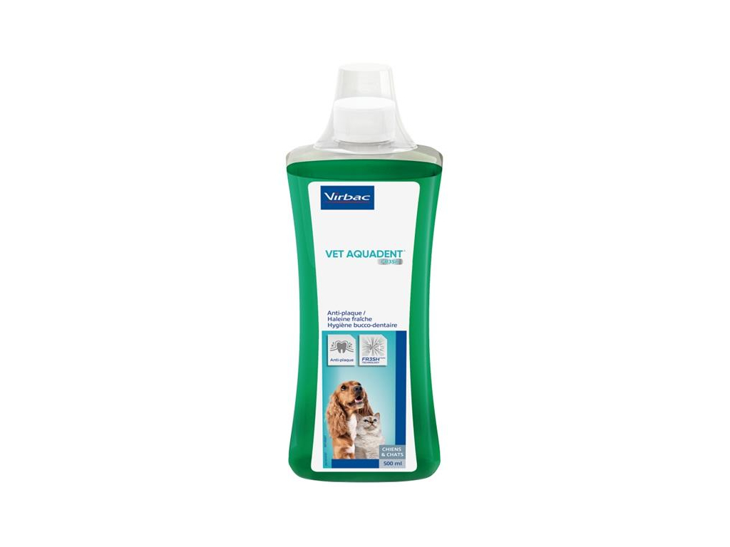 Vet Aquadent je chutné řešení pro každodenní zubní a ústní hygienu koček a psů. Přidává se do čerstvé pitné vody, pomáhá odstraňovat zápach z tlamy a v rámci orální hygieny pomáhá kontrolovat tvorbu zubního plaku. Tekuté složení přípravku Vet Aquadent může být obzvláště užitečné pro majitele koček, pro které může být čištění zubů jejich mazlíčků obtížné.