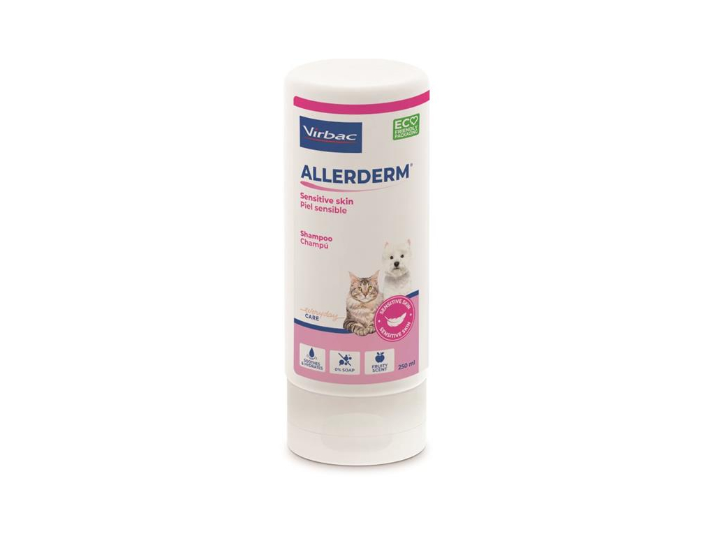 Allerderm citlivá kůže je jemný přírodní šampon z ovesných vloček, bez mýdla, s příjemnou ovocnou vůní pro běžnou hygienu psů a koček všech věkových kategorií s citlivou pokožkou. Pomáhá udržovat vitalitu kůže a zdravou kožní mikroflóru. Obsahuje S–I–S technologii (Skin–Innovative–Science).